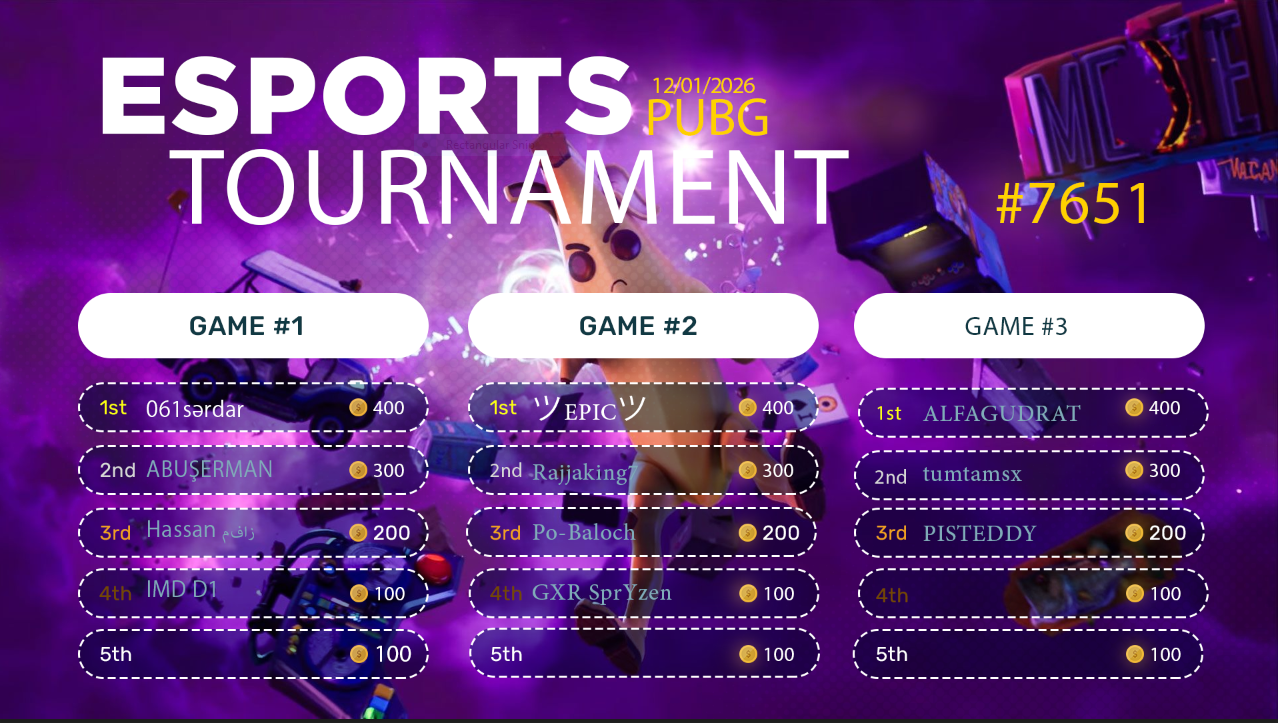 Esports Tournament #7651- PUBG - 12/01/2026