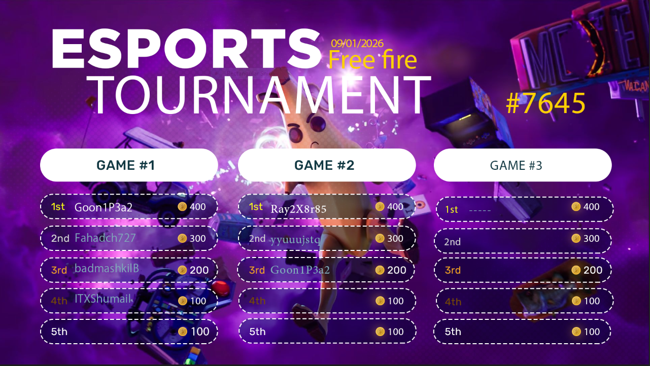 Esports Tournament #7645 - Free Fire - 09/01/2026